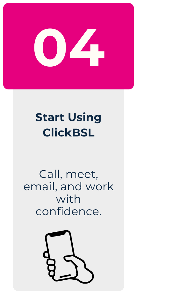Whether you’re on the shop floor, building site, office, reception, studio or at a client’s home, ClickBSL gives you instant access to communication support so you can stay connected and confident at work.